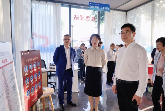 在和平國際醫(yī)院院長薛志輝、黨委書記盧瓊的介紹下,何學(xué)考一行先后參觀了醫(yī)院醫(yī)務(wù)社工服務(wù)點、文化墻、黨建長廊及紅色驛站,詳細(xì)了解醫(yī)院發(fā)展現(xiàn)狀、“兩新黨建”工作成效,并對醫(yī)務(wù)社工部“五位一體”新模式的開展情況重點調(diào)研。作為溫州首家社會辦醫(yī)機(jī)構(gòu)的醫(yī)務(wù)社工部,和平國際醫(yī)院醫(yī)務(wù)社工部自今年七月成立以來,積極探索“醫(yī)院+社區(qū)+社工機(jī)構(gòu)+慈善基金組織+志愿者隊伍”的“五位一體”協(xié)同模式,推進(jìn)“院內(nèi)+院外+社會”大聯(lián)動,以專業(yè)社工服務(wù)為醫(yī)療融入人文關(guān)懷,改善患者就醫(yī)體驗,患者滿意度從80%提升到98%,今年累計開展“紅悅工程”醫(yī)療服務(wù)43場、惠及群眾1935人次。