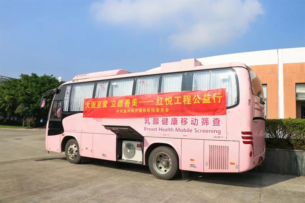 為喚醒廣大婦女“早預(yù)防、早發(fā)現(xiàn)、早治療”的健康意識,提醒全社會(huì)關(guān)愛女性乳房健康,示范更先進(jìn)更有效的乳腺癌篩查流程,9月26日,溫州和平國際醫(yī)院“紅悅工程”義診團(tuán)來到溫州醫(yī)科大學(xué),參與乳腺癌移動(dòng)篩查進(jìn)溫州醫(yī)科大學(xué)活動(dòng)。